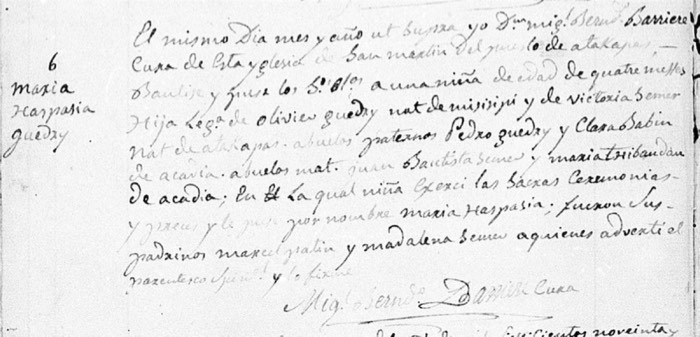 Marie Aspasie Guidry Baptism (v. 5 #6; St. Martin de Tours Catholic Church; St. Martinville, St. Martin Parish, LA)