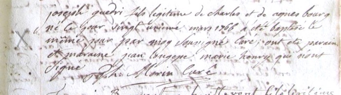 Joseph Guédry [son of Charles Guédry & Agnès Bourg] Baptism (Saint-Servan, Saint-Servan, Ille-et-Vilaine, Brittany, France; 21 Mar 1766; B) [10 NUM 35313 769] [p. 10 of 41, 1766] (Greffe)