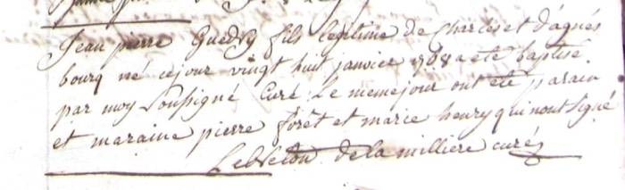 Jean Pierre Guédry [son of Charles Guédry & Agnès Bourg] Baptism (Saint-Servan, Saint-Servan, Ille-et-Vilaine, Brittany, France; 28 Jan 1768; B) [10 NUM 35313 771] [p. 4 of 36, 1768] (Greffe)