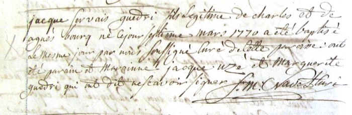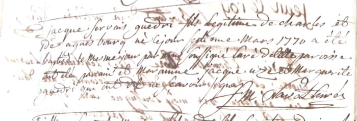 Jacques Servais Guédry [son of Charles Guédry & Agnès Bourg] Baptism (Saint-Servan, Saint-Servan, Ille-et-Vilaine, Brittany, France; 7 Mar 1770; B) [10 NUM 35313 773] [p. 8 of 38, 1770] (Greffe)