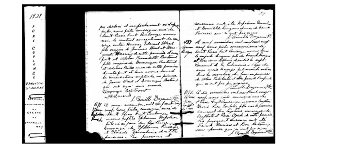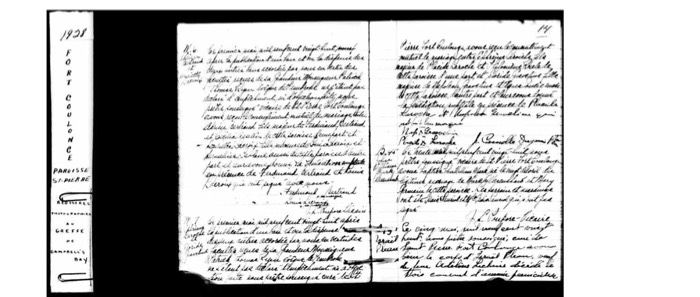 Marriage - Ephreme Laroche & Eloride Graveline; Fort Coulonge, Quebec (St-Pierre Parish) [1 May 1928; M-7] [Drouin Collection - Quebec Vital and Church Records (1621-1967)]