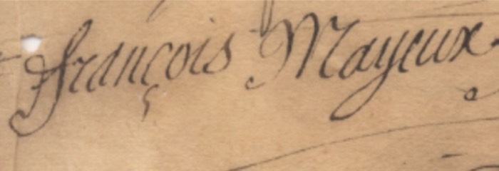 Signature of François Mayeux from Marriage License of Jean F. Decuir & Geneviève Mayeux of 28 Oct 1743