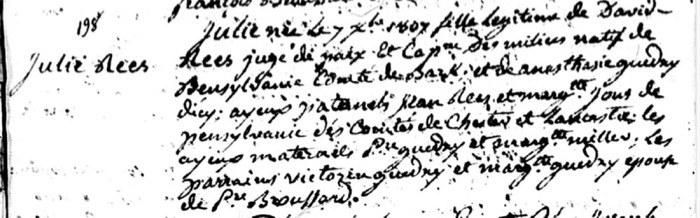 Julie Rees (v. 6-8 p. 34 #198; St. Martin de Tours Catholic Church; St. Martinville, St. Martin Parish, LA)