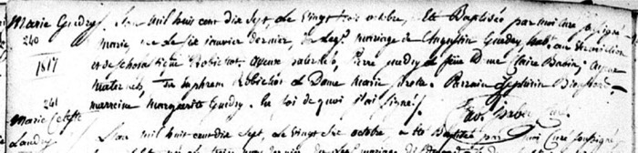 Marie Guidry Baptism (v. 7 #240-[v. 11 #240]; St. Martin de Tours Catholic Church; St. Martinville, St. Martin Parish, LA)
