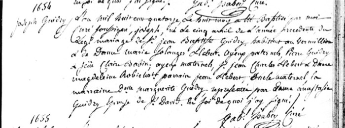 Joseph Guedry Baptism (v. 6 #1654-[sic - v. 7 #1654]; St. Martin de Tours Catholic Church; St. Martinville, St. Martin Parish, LA)